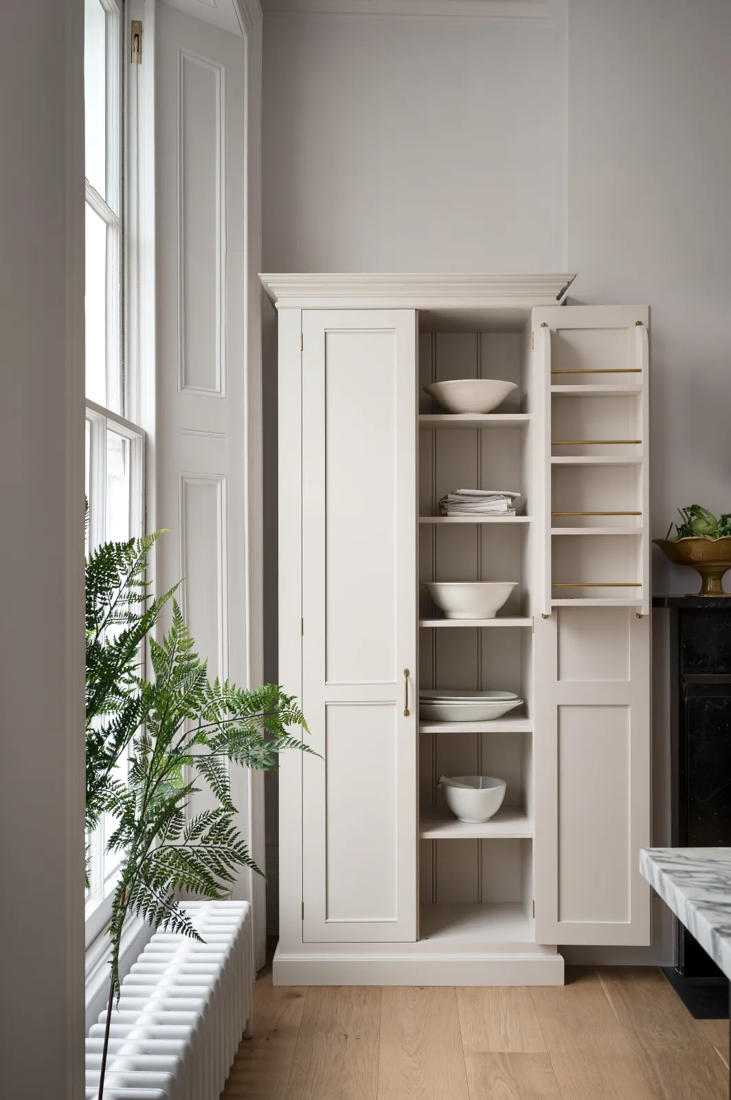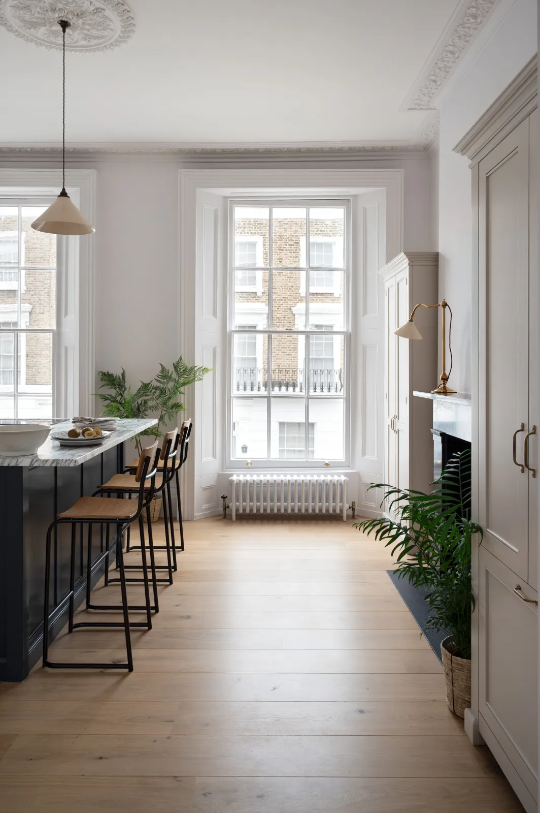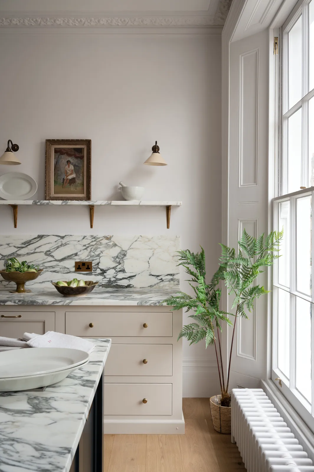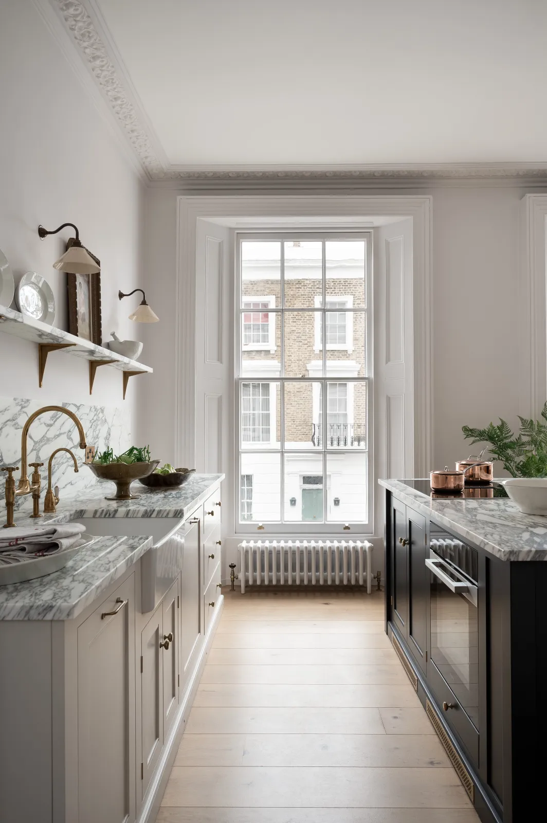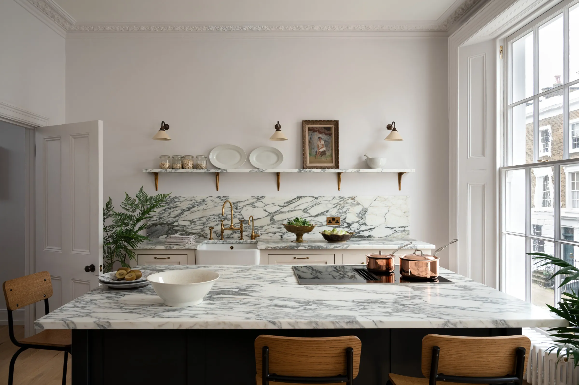 Now, up and into the kitchen where things got very elegant. Originally located down in the basement but cleverly moved to the first floor to make the most of this impressive room (just look at those huge old sash windows). The mood, the light and the colours in here were all excellent.