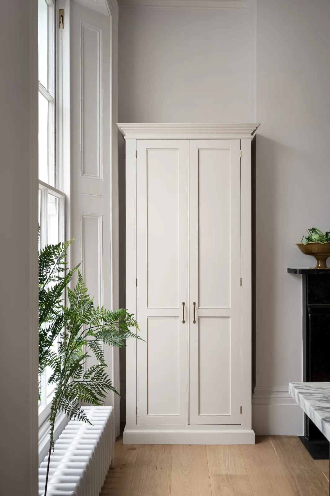 Just four freestanding cupboards from our Classic English collection were needed to create a simple, sociable and functional layout. Dishwashers, bins, fridges and freezers were hidden inconspicuously behind beautiful hand-painted doors and real consideration was given not just to the cabinets themselves, but also to the space left around them, so it all felt really airy and calm and easy to be in. We could quite happily have stayed here all day and night, people watching and pottering!!