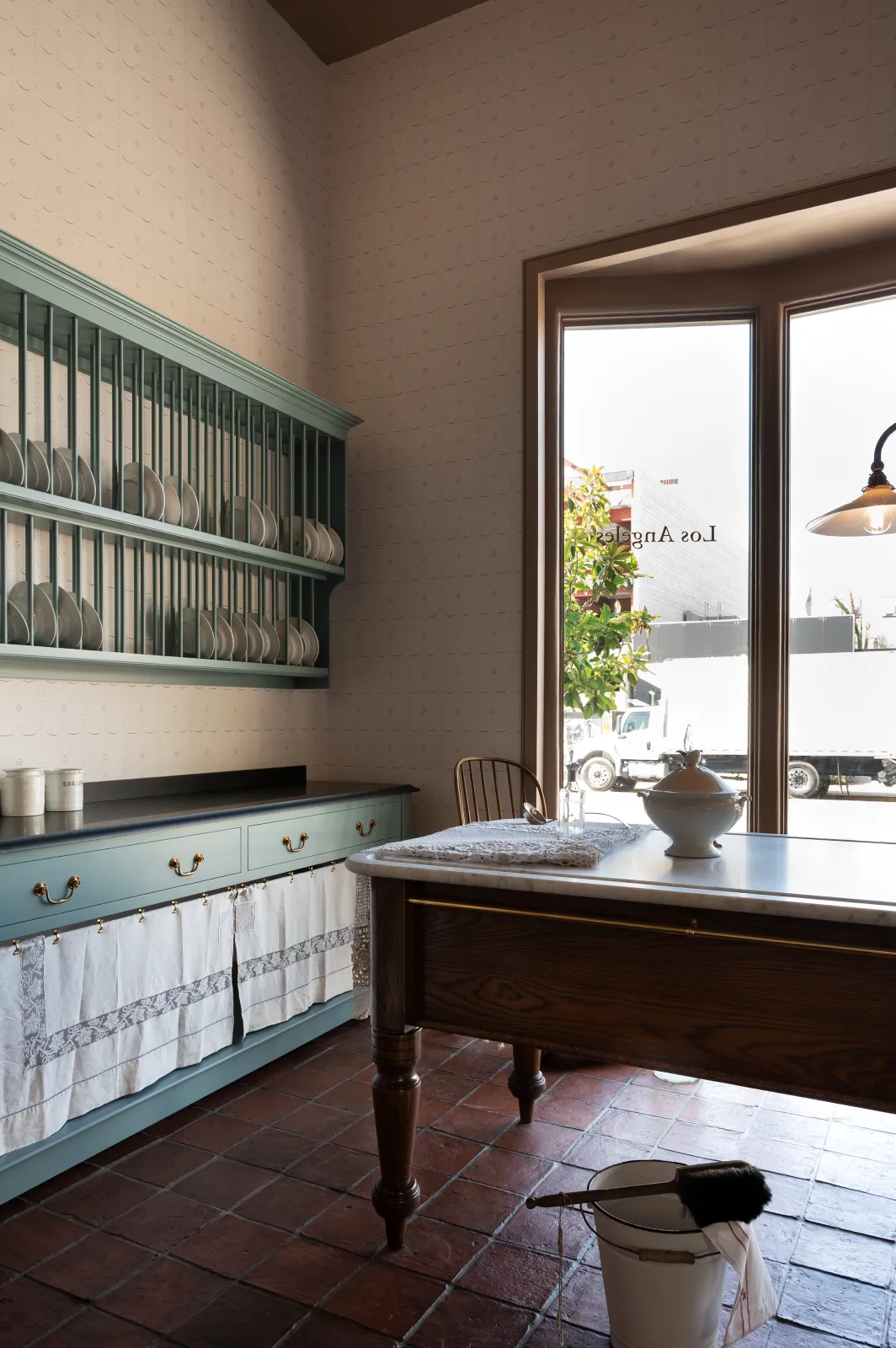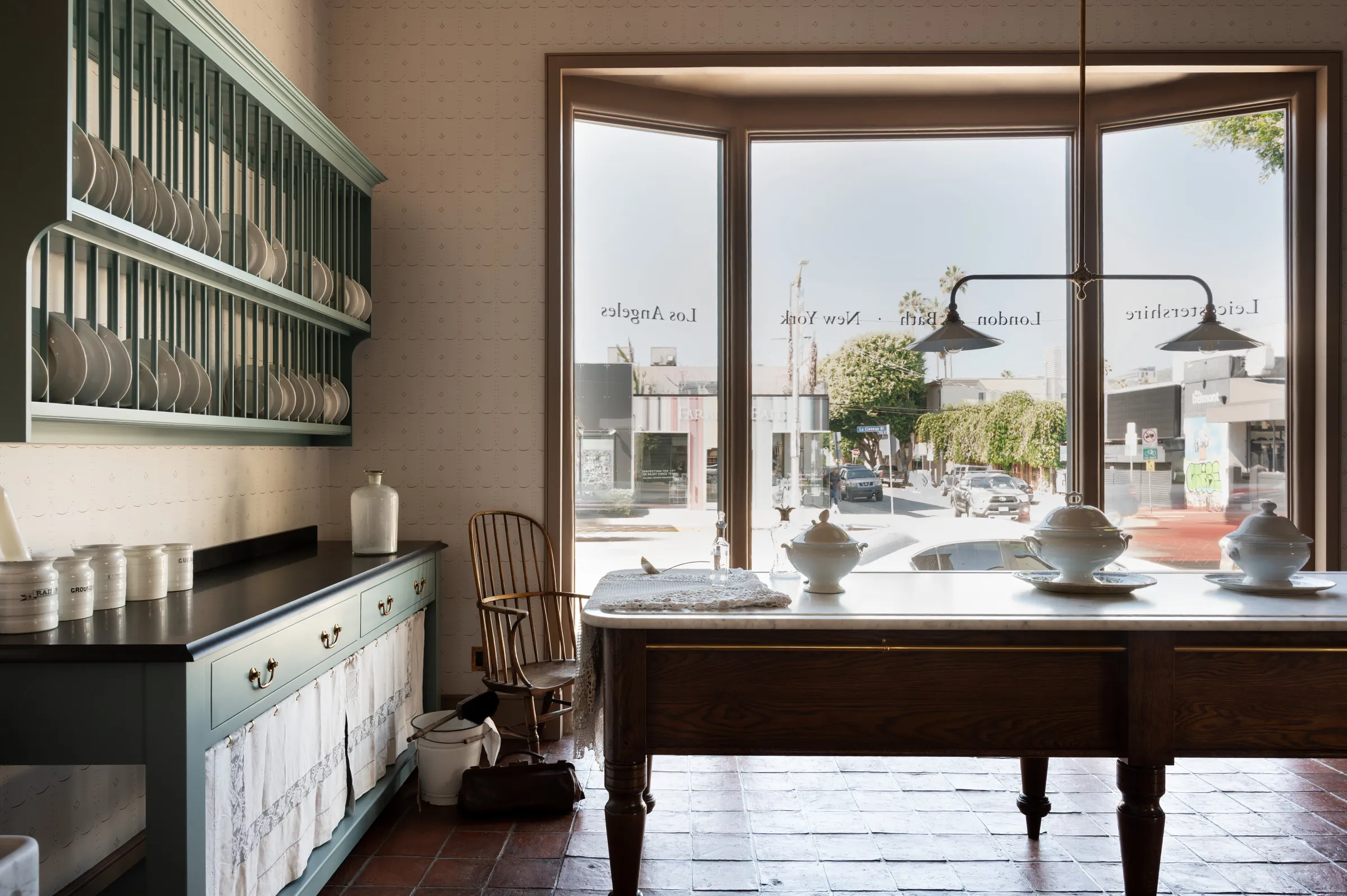 Shipped across the ocean, these English cupboards instantly looked at home in the never-ending sunshine that pours through our showroom window. Leicestershire, London, Bath, New York, and now Los Angeles are very proudly written in gold on the glass.